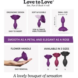 Il butt plug Open Roses del marchio Love to Love è interamente realizzato in morbido silicone, soft touch e flessibile e garantisce una penetrazione delicata e piacevole, mentre la base a forma di rosa lo rende particolarmente bello.