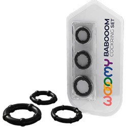 Wooomy presenta Babooom: un set composto da 3 anelli fallici che si adattano facilmente all'anatomia intima maschile e sono realizzati con un materiale super flessibile ma resistente, privo di ftalati e sicuro per il corpo.
