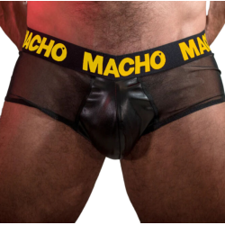 Si tratta di uno slip molto sensuale della nuova collezione SHADES FETISH, con coppa frontale che mette in risalto la mascolinità, in materiale similpelle elastico.