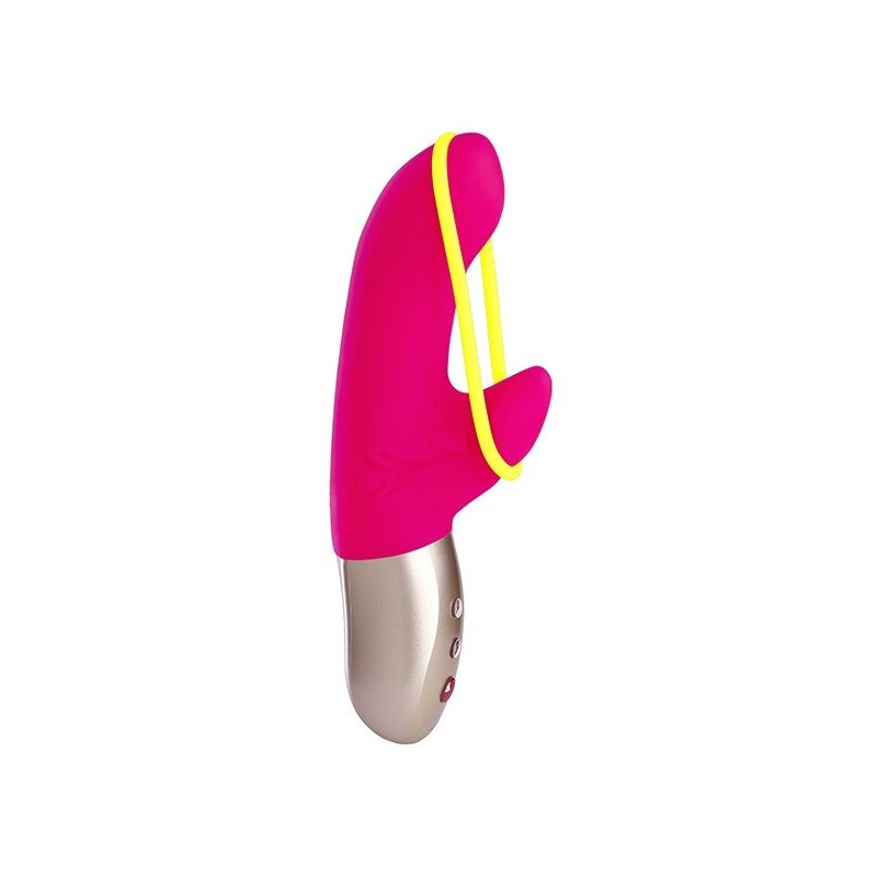 Amici del nuovo AMORINO siamo felici di confermarvi. Il vibratore, perfetto per ogni borsa, dotato di una piccola - ma eccezionale sotto tutti gli aspetti - innovazione, raccoglie molti applausi. La fascia di stimolazione in silicone delicatamente tesa viene posizionata tra la punta leggermente arrotondata e il pulsante laterale per l‘eccitazione del clitoride. Stimola esternamente la collinetta di Venere e le labbra vaginali: questo piccolo dettaglio garantisce un‘eccitazione speciale. Se utilizzato per via vaginale e anale, è sufficiente rimuovere la fascia giallo-nera. La punta leggermente curva trova facilmente i punti G e P, la curvatura all‘estremità inferiore del MiniVIBRATOR stimola il clitoride o l‘ano.