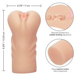 La tua prima volta non sarà l‘ultima con il masturbatore Cheap Thrills The First Time. La camera strutturata con maniche a corsa super aderente, l‘imene intatto e la stimolazione realistica creano un‘esperienza di piacere immediatamente gratificante ogni volta che scivoli dentro. Il design a estremità chiusa offre un‘aspirazione superiore, mentre la camera dalla struttura unica e il materiale Pure Skin ultra morbido ed elastico entusiasmano con una sensazione realistica. Che tu sia a casa o ovunque ti porti il piacere, il compatto 5,25 x 13,25 cm è lo stuzzicante compagno di viaggio che desideri. La Premium Pure Skin è inodore, priva di ftalati e non richiede manutenzione per risultati davvero esplosivi.